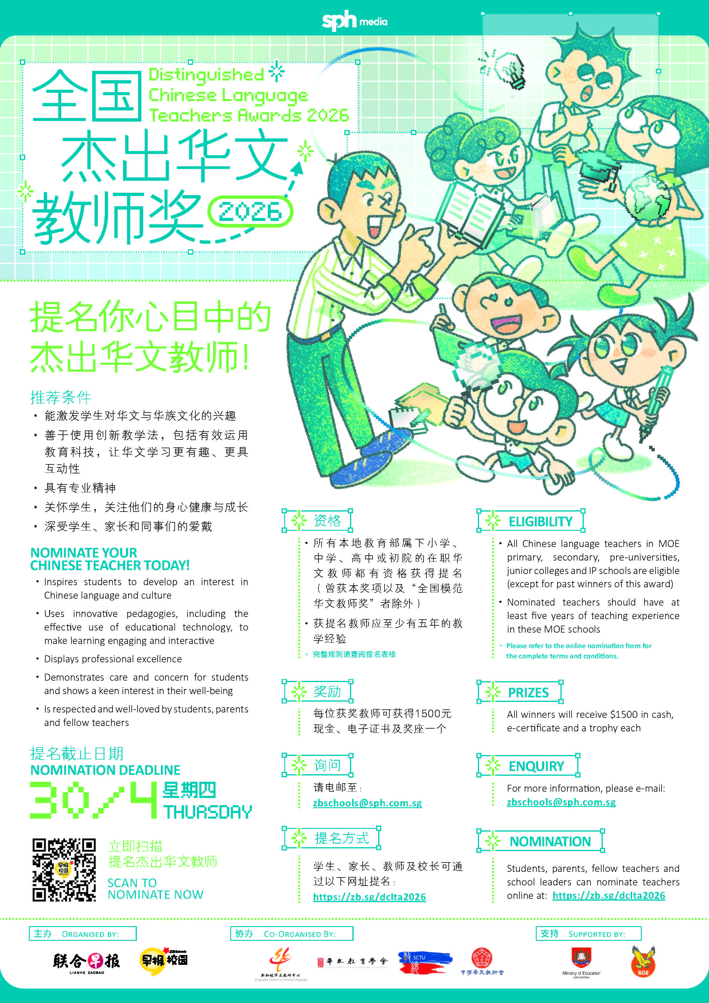 Nominations can be made online at https://zb.sg/dclta2026 or by scanning of QR code included in the posters. The closing date for nominations is 30 April 2026 (Thursday).